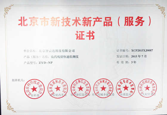 北京市新技術(shù)新產(chǎn)品(服務(wù))證——農(nóng)藥殘留...