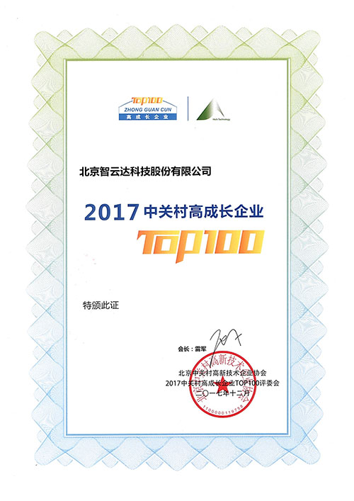2017中關(guān)村高成長企業(yè) TOP100