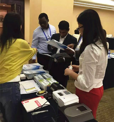 茶歇間,南南合作成員國家的官員再次被智云達的快檢產品吸引過來,對農業灌溉水質的檢測產品需求和興趣度高。