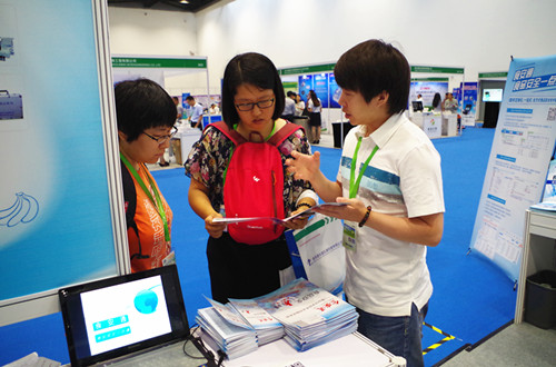 智云達軟件部技術人員向參展人員講解食品安全追溯平臺