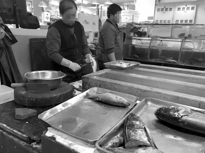 昨日,京華時報記者走訪朝陽區的家樂福超市發現,超市內活魚確實已經停售,僅出售冷凍魚。超市生鮮區域顯示,攤位上的三文魚、帶魚等冷凍魚正常售賣,但不見活水魚的蹤跡。超市工作人員稱,因供應商調整,超市內活魚都已下架。但另一超市內負責生鮮的員工表示,不讓再賣活魚的現象出現在多個超市內,因魚被檢出質量問題所致。