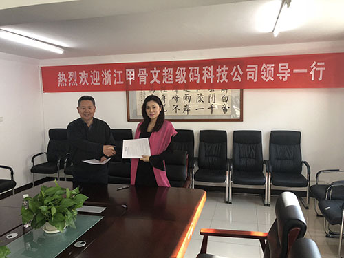 北京智云達總經(jīng)理桑總與浙江甲骨文領(lǐng)導(dǎo)簽訂合作協(xié)議