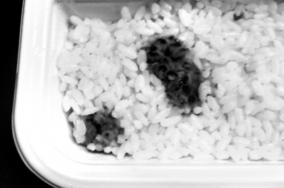 3日下午6點(diǎn),該列車剛開出長(zhǎng)沙站,11號(hào)車廂內(nèi)有11位乘客購(gòu)買了35元一份的紅燒牛肉盒飯。一位姓胡的乘客發(fā)現(xiàn)盒飯有兩處明顯的霉斑。但是盒飯的包裝是2013年10月10日,還有"常溫下貯存,保質(zhì)期90天"的字樣。