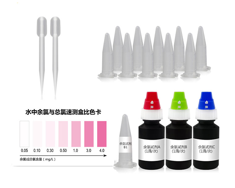 總氯分為游離性余氯(余氯)和結(jié)合性余氯。把氯投入水中后,除了與水中有機(jī)物、還原物和細(xì)菌的殺滅等氧化還原需要消耗的氯以外,水中還剩下的氯,而稱為總氯。游離性余氯,一般指水中的氯分子、次氯酸分子及次氯酸離子。總氯含量減去游離性余氯含量,可得到結(jié)合性余氯含量。本試劑盒適用于水中余氯、總氯的現(xiàn)場(chǎng)快速檢測(cè)。