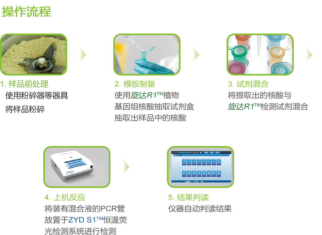 旋達(dá)R1?轉(zhuǎn)基因檢測系列試劑,基于恒溫擴(kuò)增技術(shù)平臺,以特別設(shè)計的2對特異性識別檢測靶標(biāo)的獨(dú)有基因序列,能快速、準(zhǔn)確地鑒定檢測出樣品中是否含有特定轉(zhuǎn)基因成分。