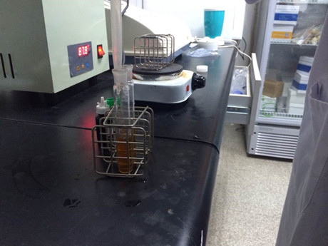 實(shí)驗(yàn)人員取 2g樣品放入比色管中,加入乙酸乙酯,充分振搖,靜置,取上清液于試管中或表面皿上,在 85℃左右水浴中加熱 ,揮干余液,放至室溫后,加入 1mL 的純凈水充分溶解殘?jiān)尤攵臼髲?qiáng)試劑,輕輕搖動后,將試管放入 90℃以上水浴中,加熱 5min 后取出,觀察顏色變化。