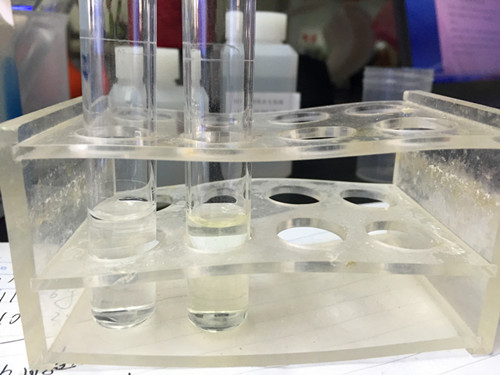 然后我們用兩支10ml比色管分別作為空白管和檢測管,我們先往檢測管中加入2ml樣品液、0.6ml試劑B、1.4ml試劑C搖勻靜置8min作為檢測管,然后往空白管中加入ml樣品液、0.6ml試劑B、1.4ml蒸餾水搖勻靜置8min作為空白管