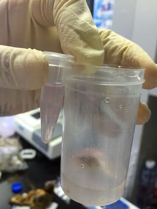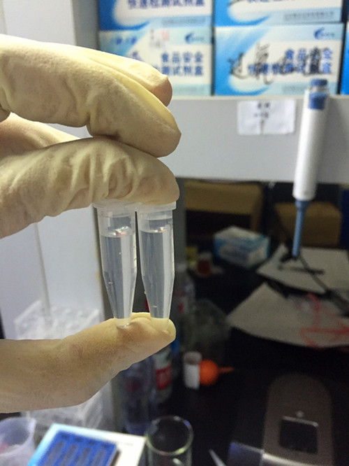 離心管中呈現(xiàn)的顏色與比色卡比較,有少量亞硝酸鹽存在,但是沒有超標(biāo),為合格樣本。
