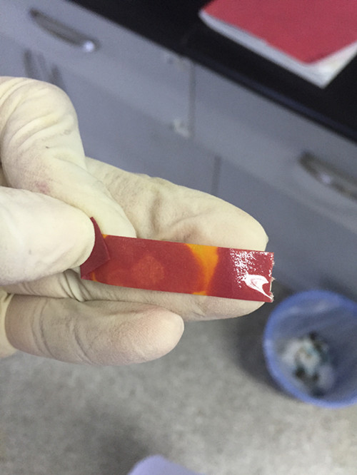 經(jīng)過檢測我們可看到姜黃試紙條沒有變色,樣品為陰性樣品,不含有硼砂。