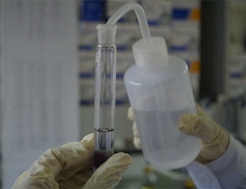 1、樣品管:取0.4 mL樣品液于10 mL比色管中,加B溶液1 mL、C溶液0.2 mL,混勻,加D溶液0.4 mL,搖勻,再加E溶液0.4 mL,立即用蒸餾水稀釋至5 mL刻線,搖勻,靜置20 min,進行檢測。