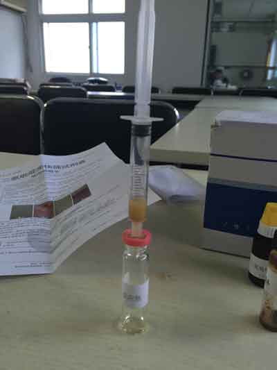 取1支注射器,拔出活塞,接過濾器,過濾器下端置于反應瓶口上,將樣品上清液輕輕倒入針筒內,裝入活塞擠壓,收集濾液于反應瓶內。