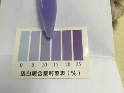 取4 mL顯色液加入比色管中,蓋上蓋,用力將奶粉全部搖溶,顯色3分鐘,在3~5分鐘內(nèi)將比色管襯在白紙上與標(biāo)準(zhǔn)比色卡進(jìn)行對(duì)比,找出與乳粉蛋白質(zhì)標(biāo)準(zhǔn)比色卡上相近的色階,即為每100g乳粉樣品中蛋白質(zhì)的含量。