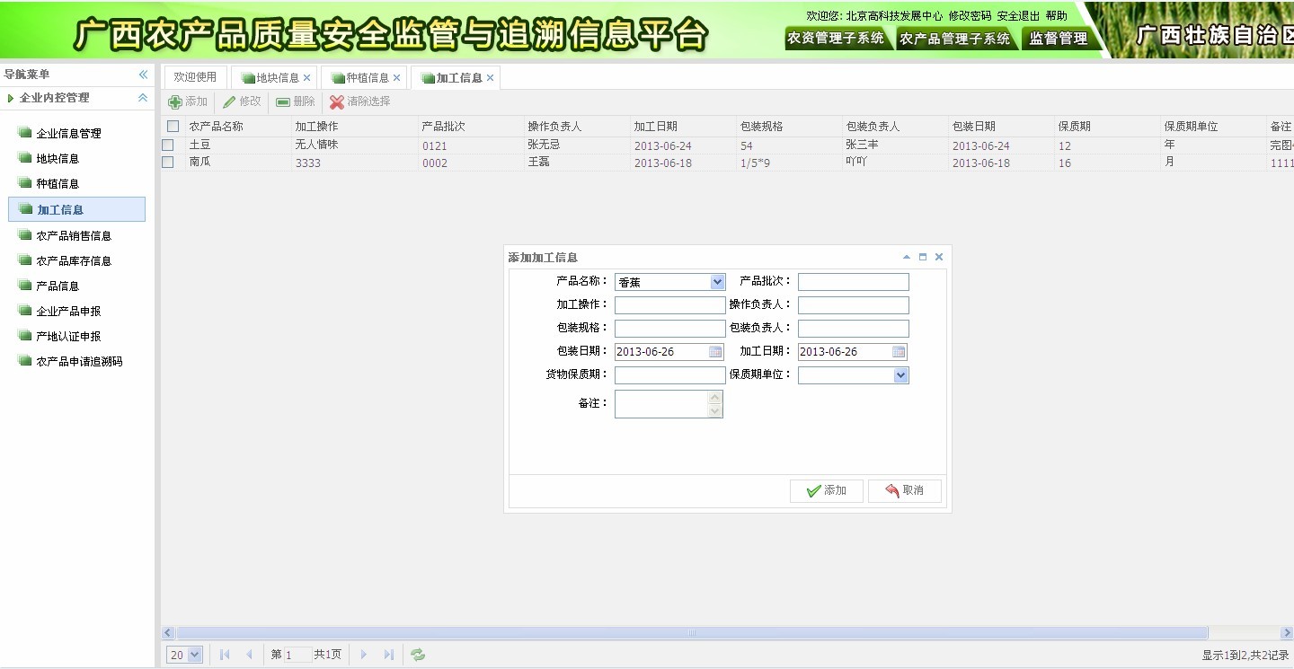 ? 企業(yè)信息管理:基本資質(zhì)、產(chǎn)地環(huán)境、生產(chǎn)基地、管理制度等;